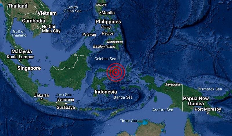 The tremor hit at 6:55 am local time (2255 GMT) at a depth of 10 kilometres (6.2 miles) with the epicentre offshore near North Sulawesi province, according to the USGS.