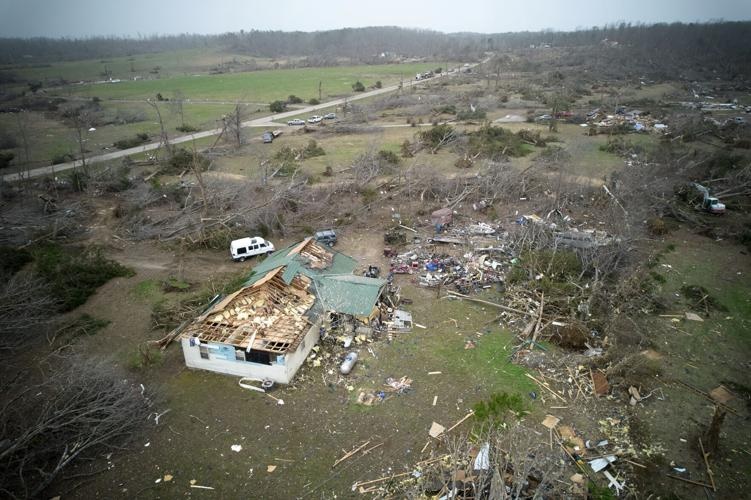 Mississippi Gov. Tate Reeves announced six people died in three counties and three more people were missing late Saturday as storms moved further east into Alabama, where damaged homes and impassable roads were reported.
