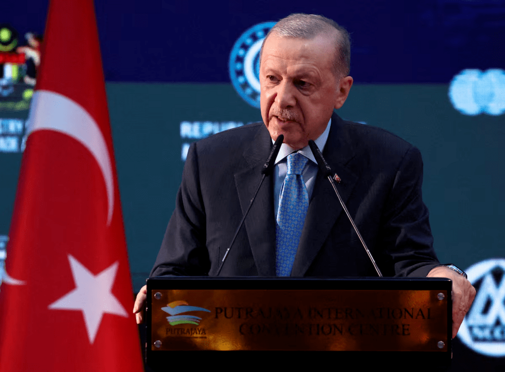 Turkish President Tayyip Erdogan speaks at the Malaysia-Turkey Business Forum during his working visit to Malaysia, in Putrajaya, Malaysia, February 11, 2025. REUTERS/Hasnoor Hussain/File Photo