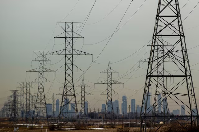 Power lines stretch towards the city of Mississauga visible in the background in Oakville, Ontario, Canada. (File Photo)