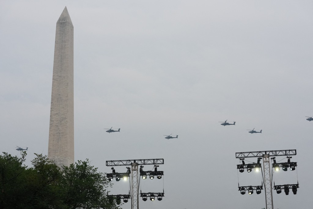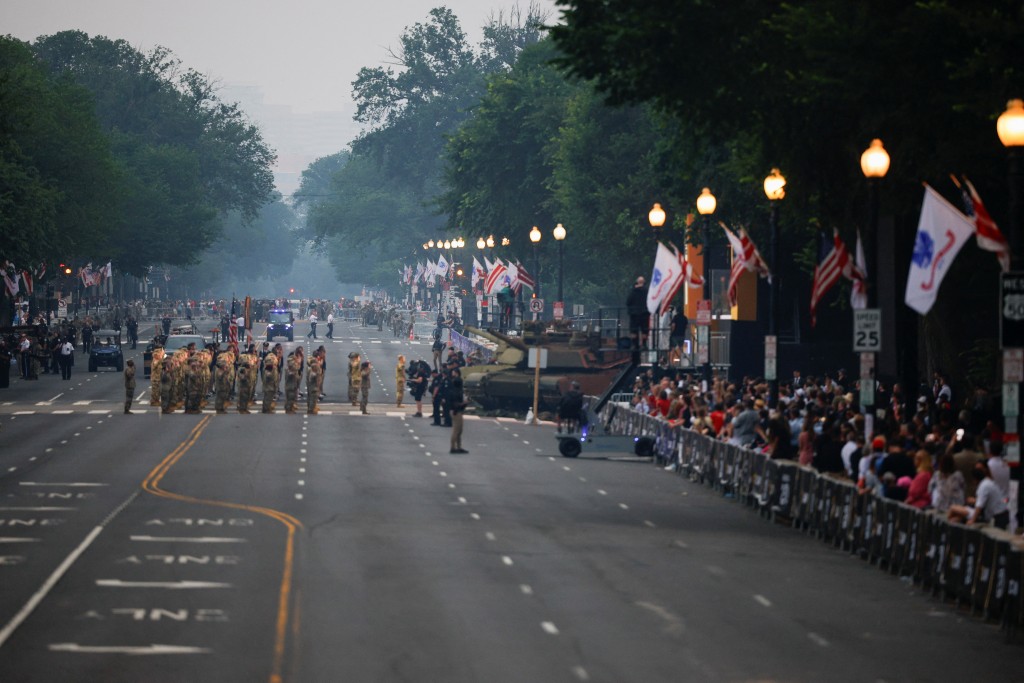 Tanks, armored personnel carriers and artillery rumbled down the parade route along storied Constitution Avenue, an unusual sight in the U.S. where such displays of military might are rare.