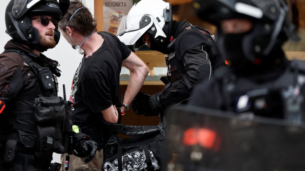 In Paris, riot police periodically used teargas to disperse crowds. Nearly 200 people were detained in the capital.
