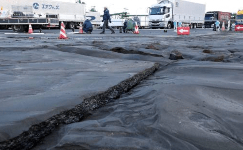 In Aomori's Hachinohe City, parts of a shopping mall ceiling collapsed and the port area showed signs of soil liquefaction, with muddy water emerging from cracks. In Hokkaido, ceiling panels cracked and fell at New Chitose Airport, compounding travel disruptions from a snowstorm that had already canceled 75 flights. The combined disruptions left about 200 passengers stranded overnight at the airport, exceeding its 150-person capacity for such emergencies.