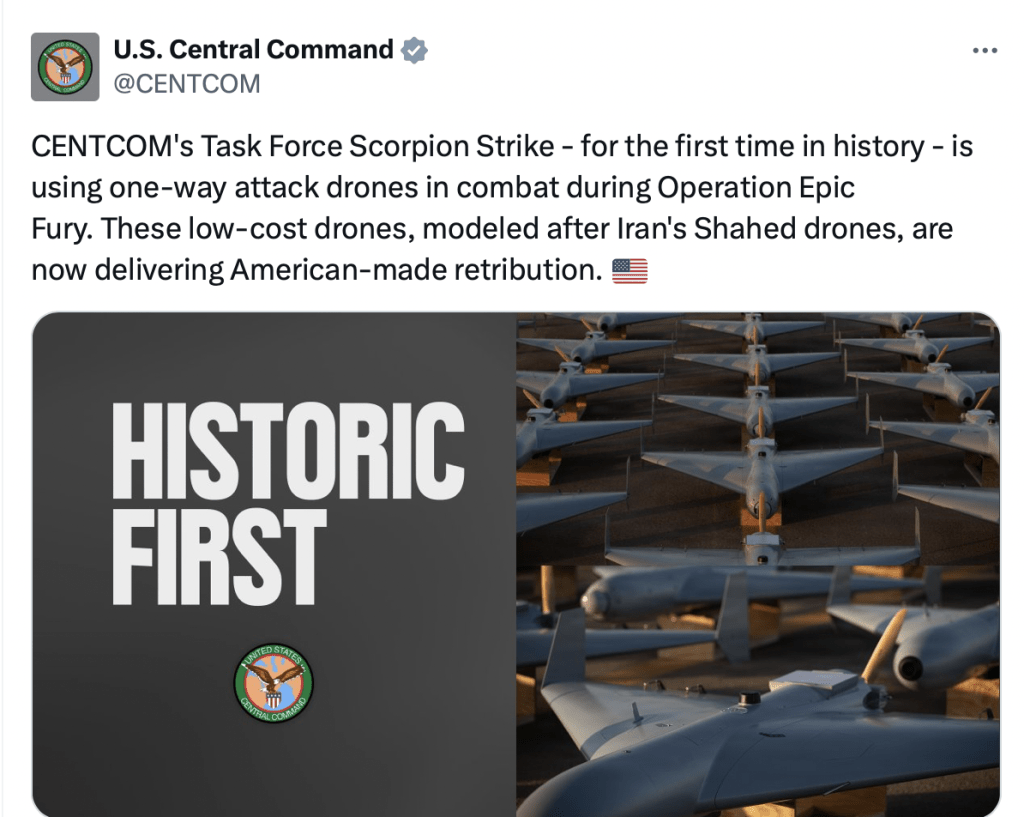 Meanwhile, US Central Command confirmed the "Scorpion Strike" task force deployed LUCAS suicide drones for the first time during Operation Epic Fury. Ironically, the LUCAS was developed based on Iran's Shahed design and costs only about US$35,000 per unit, significantly cheaper than traditional cruise missiles.