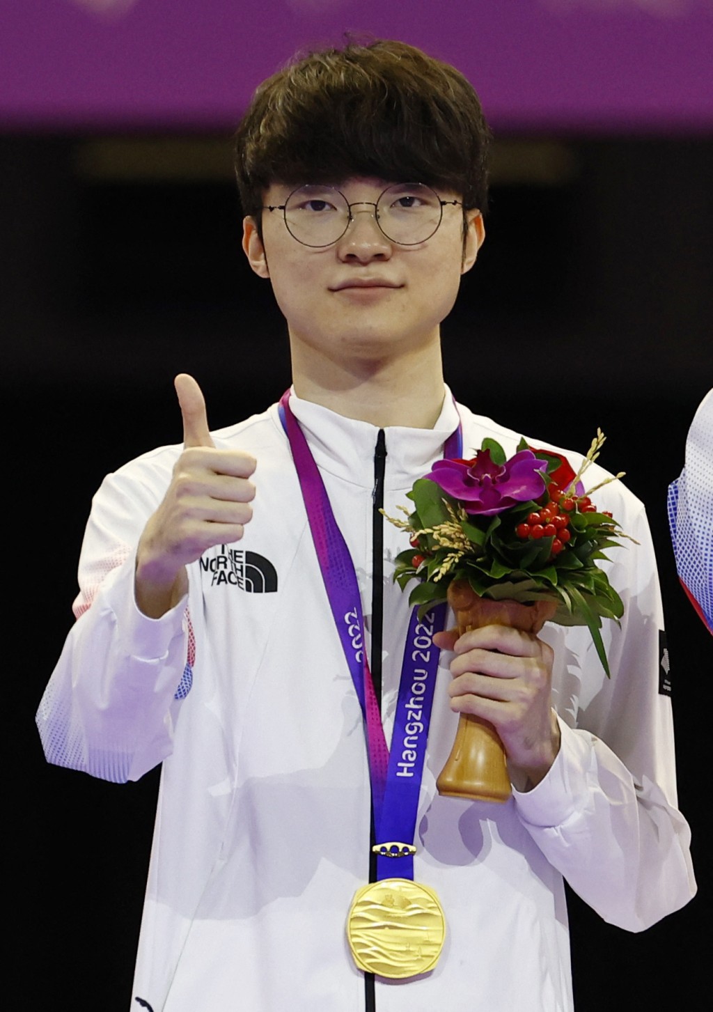 Faker following his gold medal win at the 2022 Hangzhou Asian Games. REUTERS