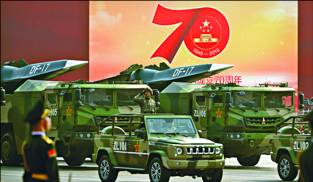DF-17 missiles are paraded on military vehicles in Beijing on National Day in 2019. AP