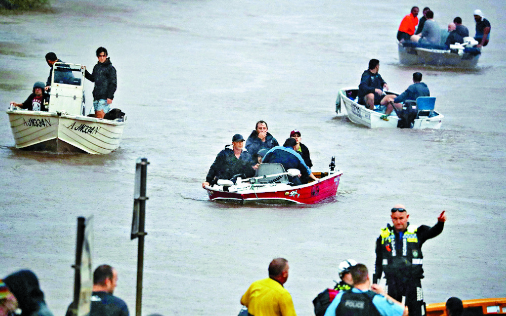 Tens of thousands of people were ordered to evacuate as heavy rains smashed Australia's east coast yesterday, submerging towns and stranding residents on rooftops, with authorities warning of life-threatening flash floods.