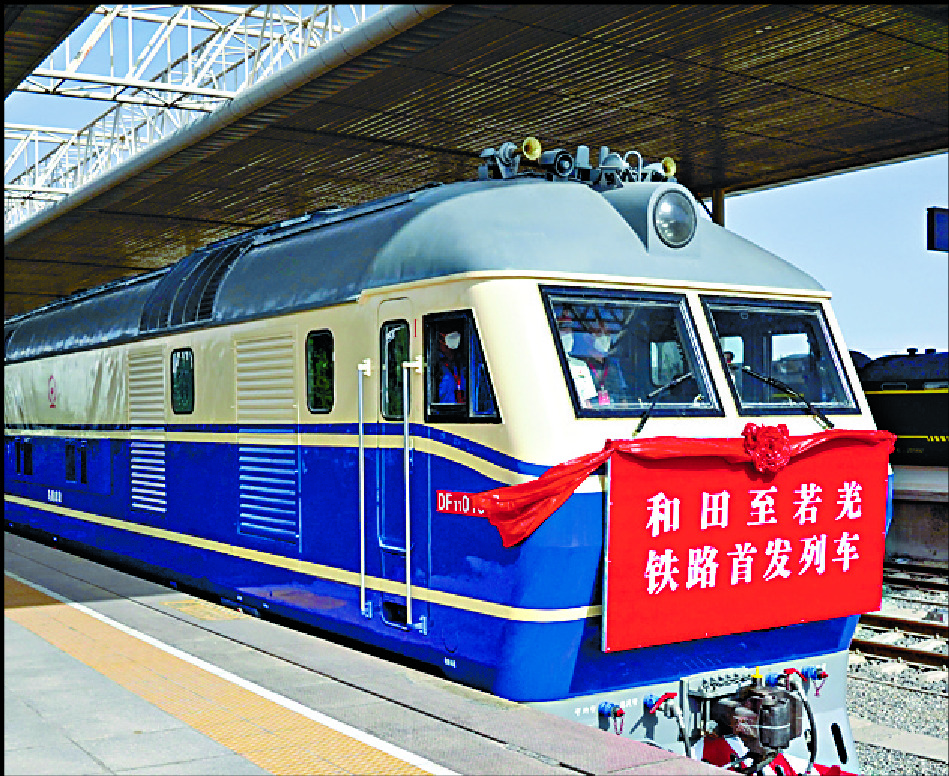 The first Hotan-Ruoqiang Railway train sets off from Hotan station, taking passengers to parts of the Taklimakan desert. XINHUA