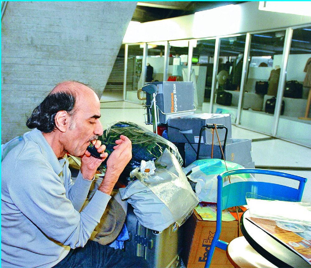 A day in the life of Mehran Karimi Nasseri at the terminal1 of Charles De Gaulle airport in 2004, when his plight inspired a Tom Hanks movie. AFP