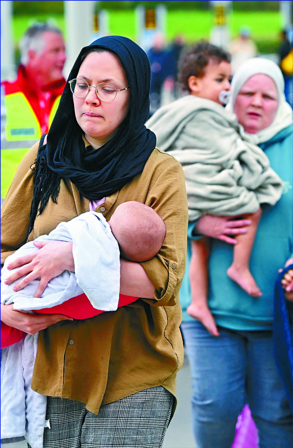 Evacuees arrive at Stansted Airport in Britain. REUTERS