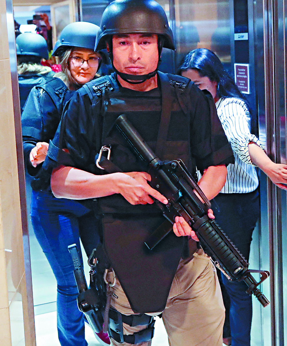 Sarauz, who was escorted by police and wearing a bullet-proof vest and helmet, said she and her three children were "also in danger."