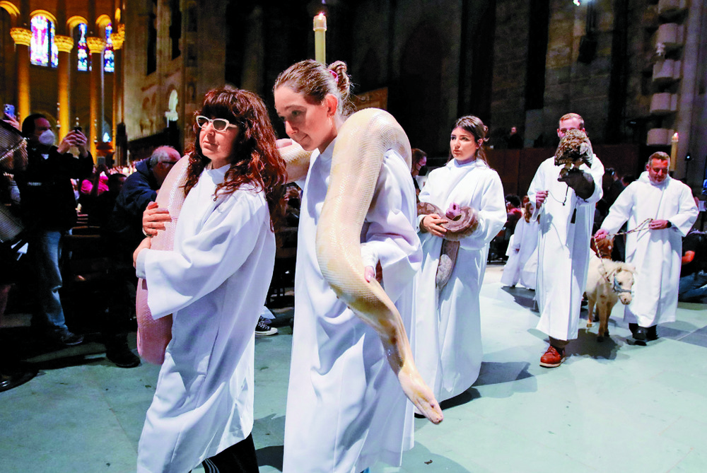 Also filling the pews were an alligator, an owl, bunnies, goats, a lemur and a duck - along with other species.