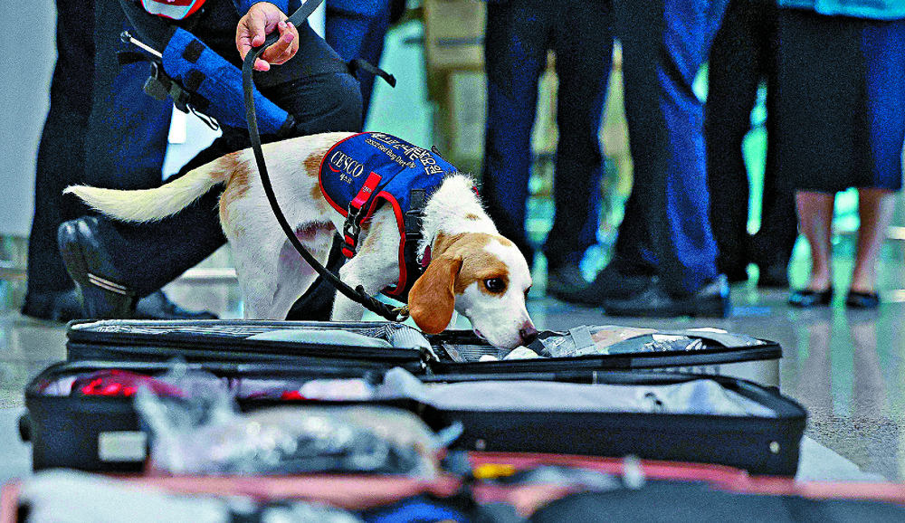 The sniffer dog, Ceco, was deployed at the main airport in Seoul as part of an initiative between the government and South Korea's largest pest control company, Cesco.