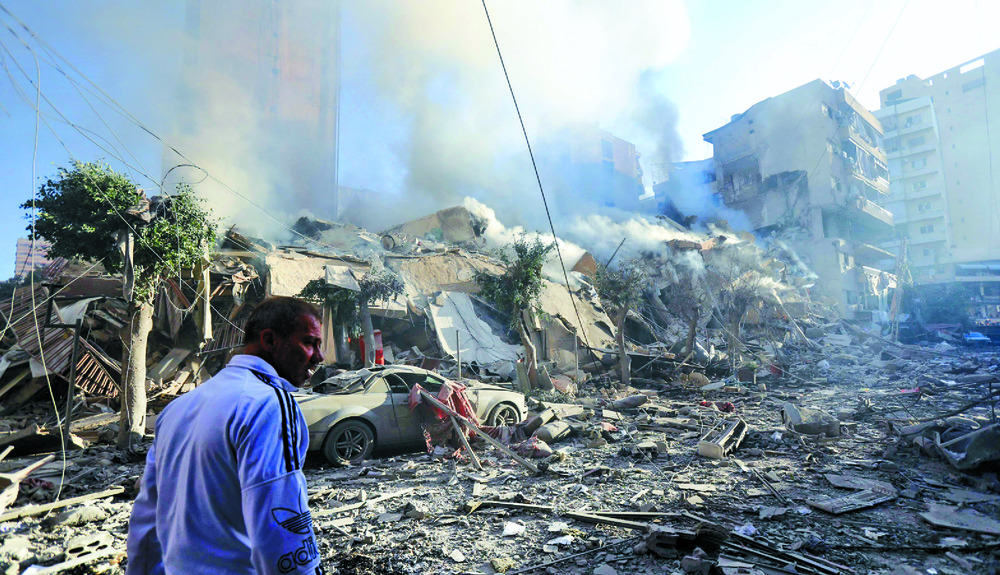 A general view of south Lebanon in the wake of air strikes that leave a resident of Moawwad surveying the loss of his neighborhood, right. aFP