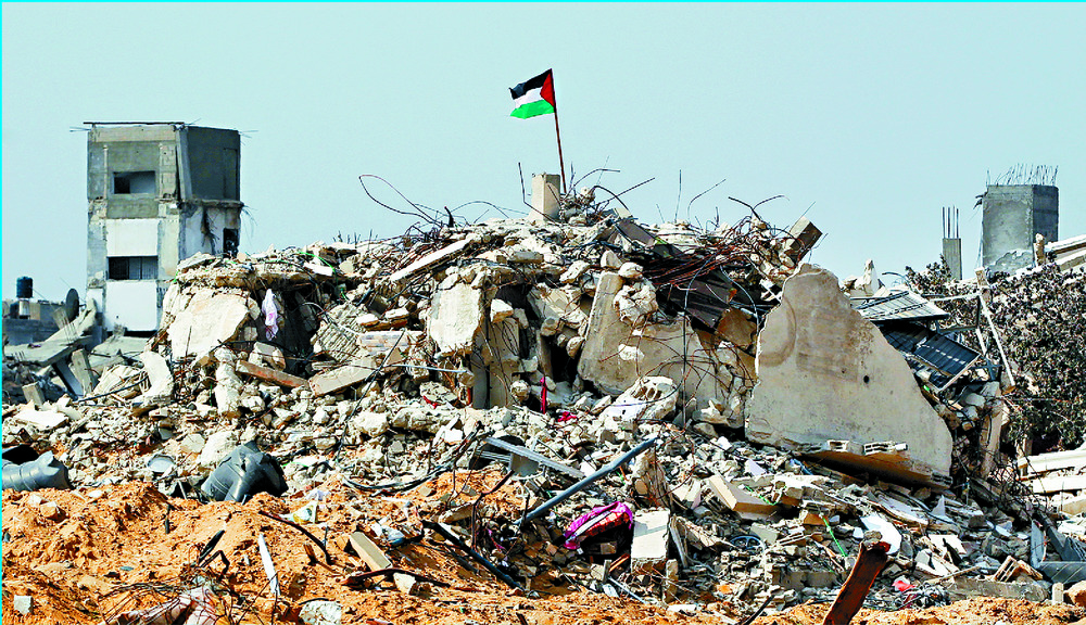 A Palestinian flag flies amid the rubble in Gaza, which Donald Trump, with Benjamin Netanyahu, wants to turn into a resort after a US takeover. REUTERS, AFP