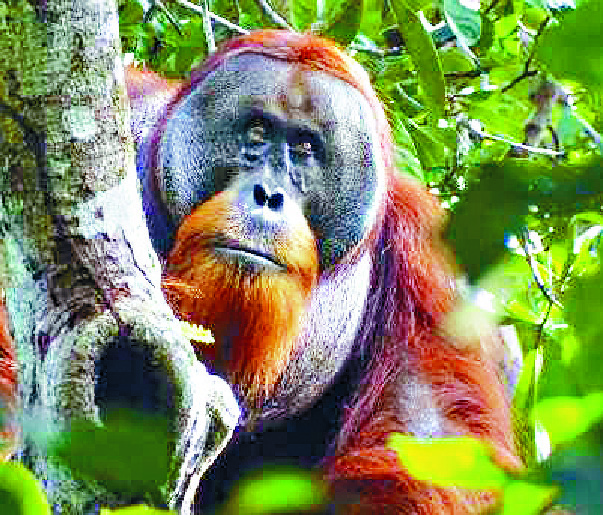 The footage, which went viral on Indonesian social media, shows the male orangutan roaming across a chasm of sand streaked with white and black rocks, dug into land still surrounded by vegetation.
